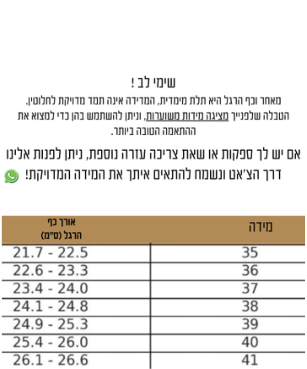 * רוצה מידה אחרת? צבע? דגם? הכל אפשרי תוך 14 ימים ממועד קבלת הנעליים.